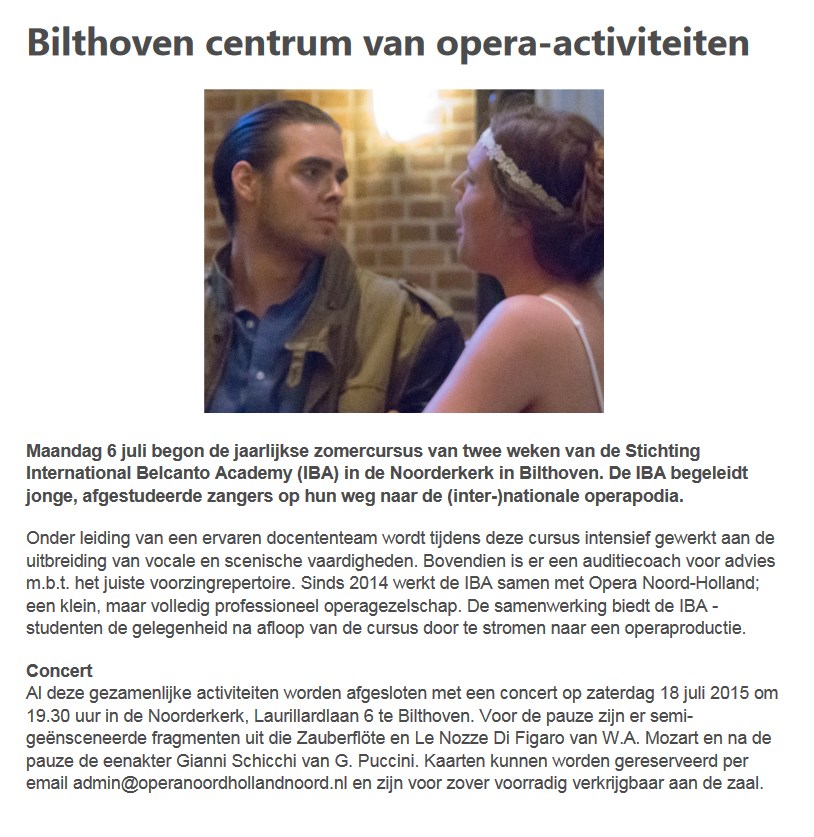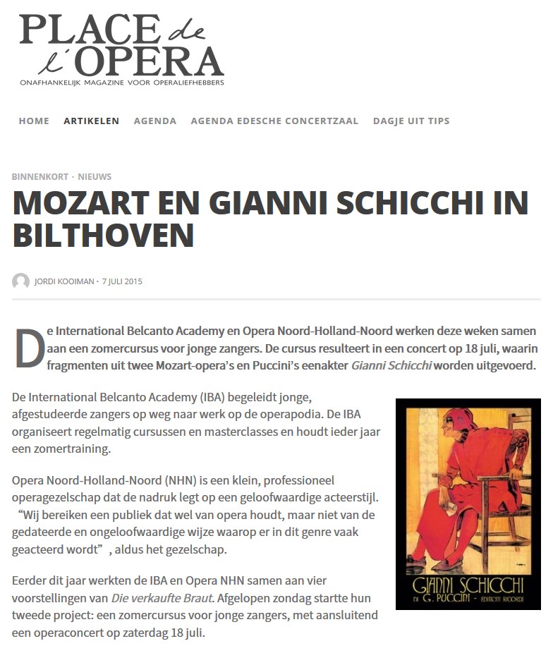- Artikel Opera Magazine IBA zomercursus en Gianni Schicchi